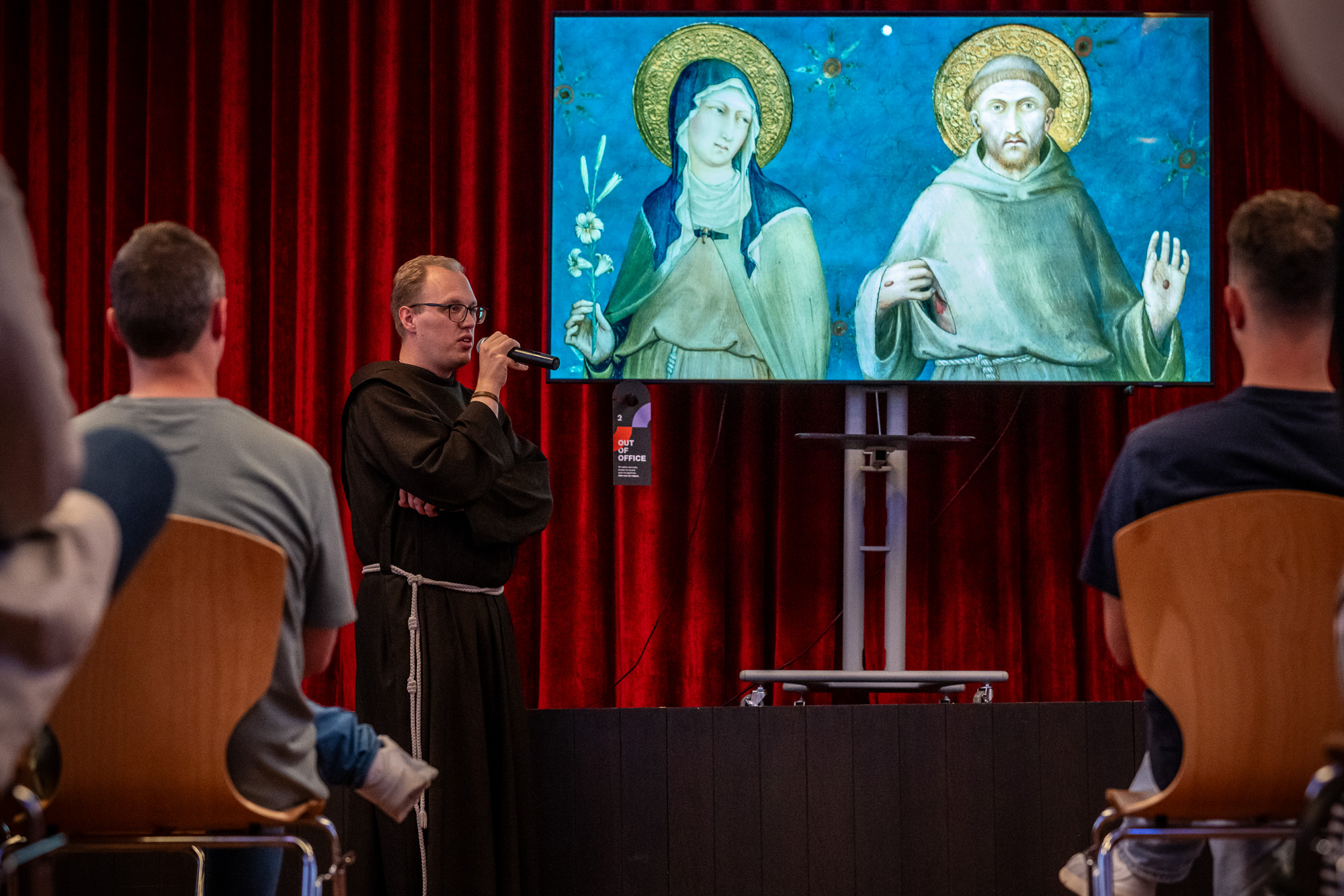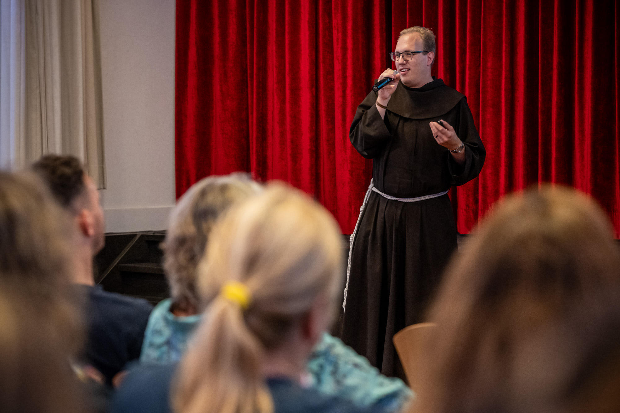 Daarom vroegen we onze kloosterbuur, Minderbroeder Hans-Peter Bartels, om te spreken over de Franciscanen en de manier waarop zij al eeuwenlang hun volgers bereiken. Bijzonder hoe een muisstille zaal zich mee liet voeren in zijn verhaal, met ‘ontmoeten’ en ‘liefde’ in de hoofdrol.